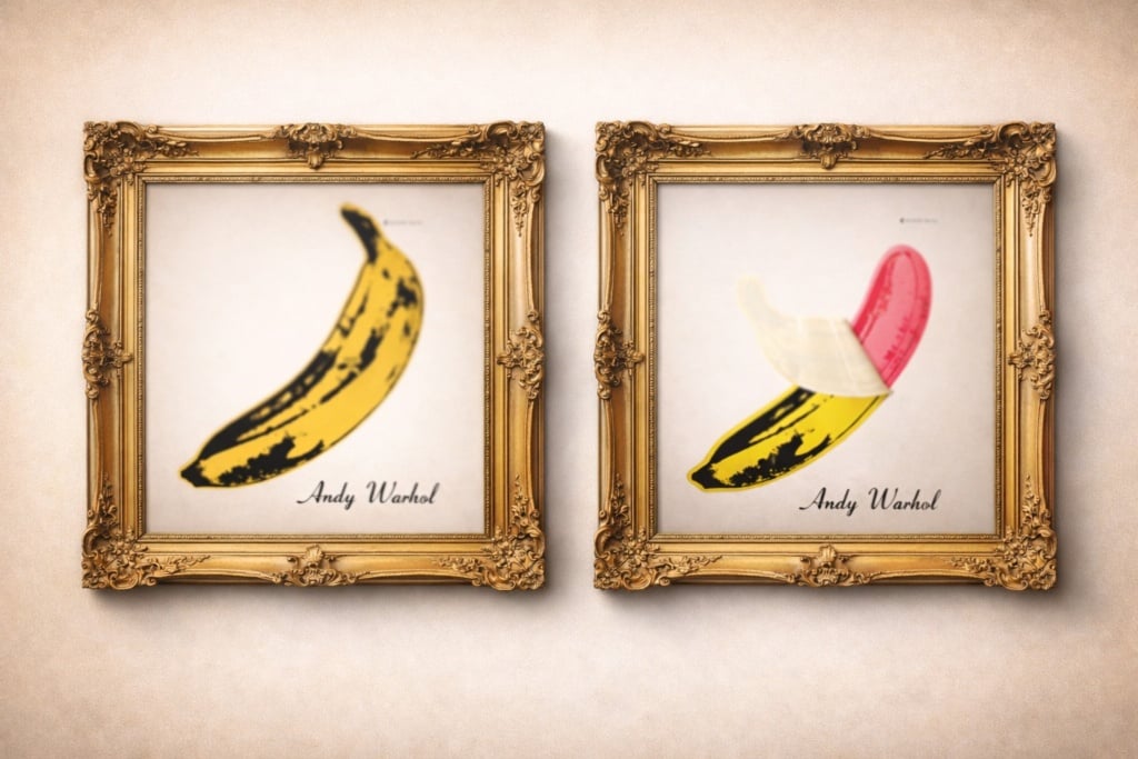 Nella sua prima versione, la copertina di The Velvet Underground & Nico raffigura UNICAMENTE la banana insieme alla firma del famoso artista pop. Non c’era nient’altro: né il nome della band, né il titolo del disco, né la denominazione dell’etichetta Verve Records.