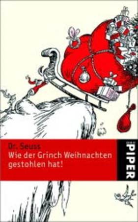 In generale, dobbiamo notare che in nessuna edizione de Il Grinch vengono utilizzate grafiche provenienti dai fortunati adattamenti cinematografici. A campeggiare in copertina è sempre un’illustrazione di Dr. Seuss. Ad esempio, in questa copertina di un’edizione tedesca de Il Grinch, in cui il protagonista è intento a far scomparire tutti i regali rubati ai poveri Chi.