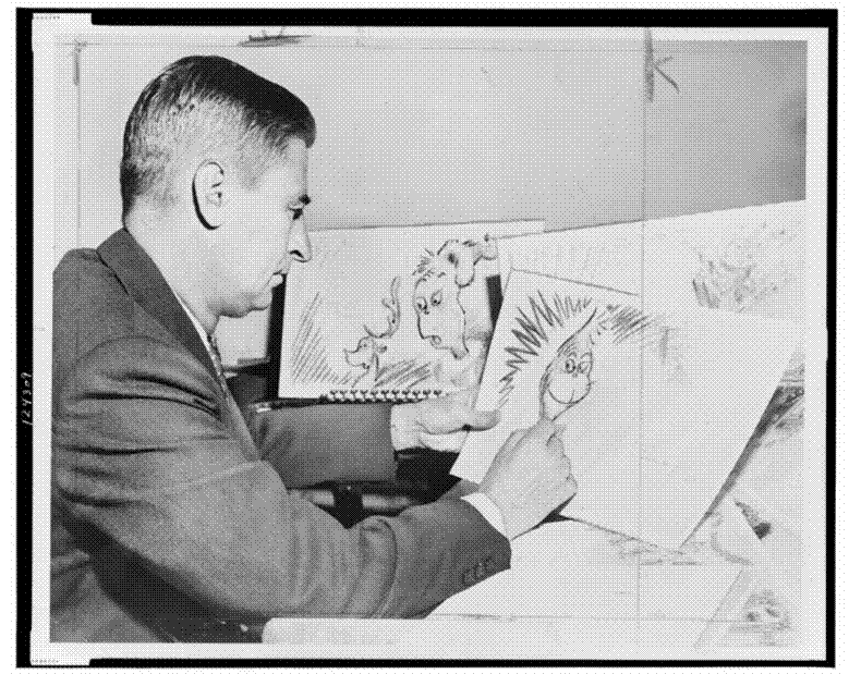 L’autore statunitense di libri per bambini aveva appena pubblicato il suo best-seller Il gatto col cappello (in inglese The Cat in the Hat), ma non doveva essere il periodo migliore della sua vita. I resoconti narrano che il 26 dicembre dell’anno precedente il Dr. Seuss si stava lavando i denti quando notò sul suo viso riflesso nello specchio uno sguardo decisamente… grinchesco! È proprio la delusione dell’autore rispetto alla commercializzazione del Natale a ispirare il suo capolavoro anti-natalizio: “Mi resi conto che qualcosa era andato storto con il Natale, o più probabilmente con me. Così scrissi la storia del mio rancoroso amico, il Grinch, per vedere se riuscivo a riscoprire qualcosa del Natale che ovviamente avevo perso”, il Dr. Seuss racconta così in un’intervista la nascita del Grinch.