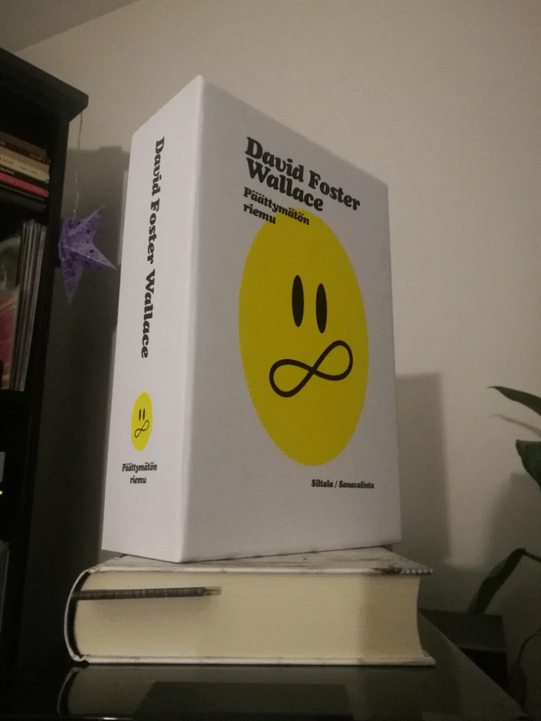 Uno smile giallo è la scelta per la copertina dell’edizione finlandese di Infinite Jest, uscita nel 2020. Lo smile sorridente è un simbolo ricorrente nel romanzo di David Foster Wallace: lo scrittore ne ribalta il significato positivo iniziale facendolo diventare il simbolo di un’organizzazione terroristica.