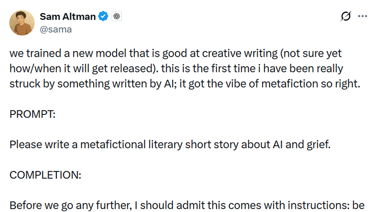I chatbot alimentati dalle AI sono in grado di creare testi complessi e “creativi”: per farlo hanno solo bisogno di un input da parte di un umano, il prompt. Secondo Sam Altman, CEO di OpenAI – l’azienda che gestisce ChatGPT – i nuovi modelli di ChatGPT in arrivo saranno particolarmente bravi proprio nella scrittura creativa.