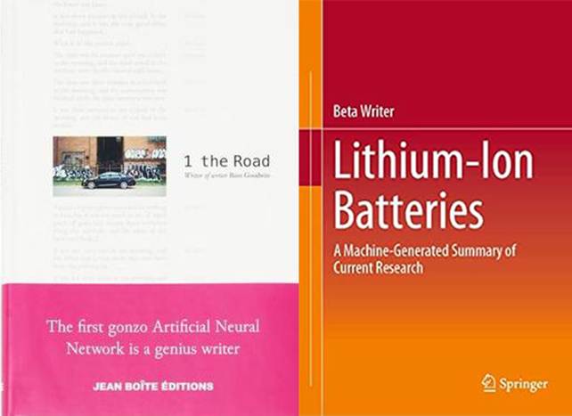 Nel 2019 un altro libro interamente scritto da un’intelligenza artificiale venne pubblicato dalla celebre casa editrice Springer. Dobbiamo dire che il contenuto non era dei più entusiasmanti: si trattava infatti di una assai noiosa sintesi di oltre 50mila paper scientifici che parlano di batterie e ioni di litio.