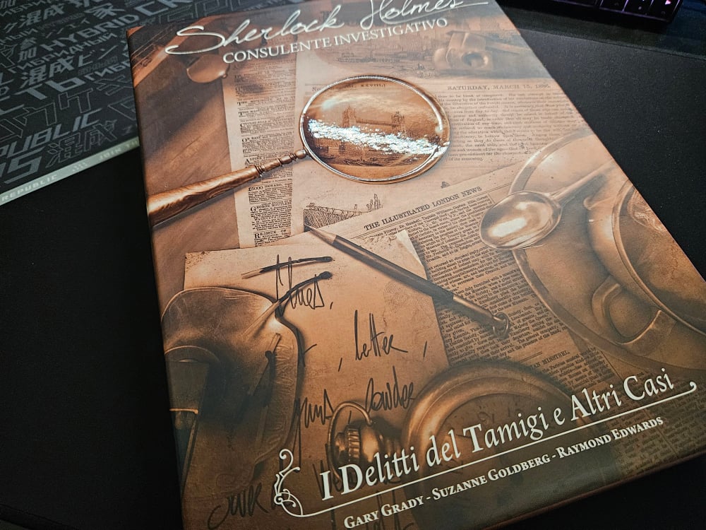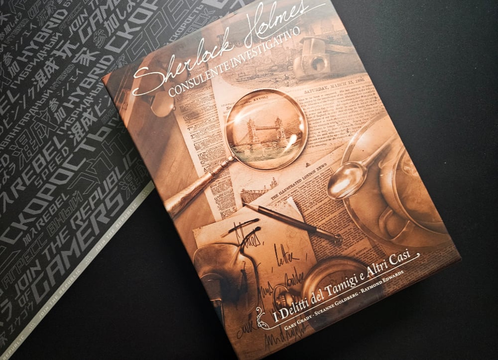L’edizione portata sul mercato da Asmodee è molto curata in ogni sua parte, si vede il grande impegno dell’editore. Analizziamo in particolare la prima uscita in ordine di tempo, cioè Sherlock Holmes: Consulente Investigativo – I Delitti del Tamigi e Altri Casi: