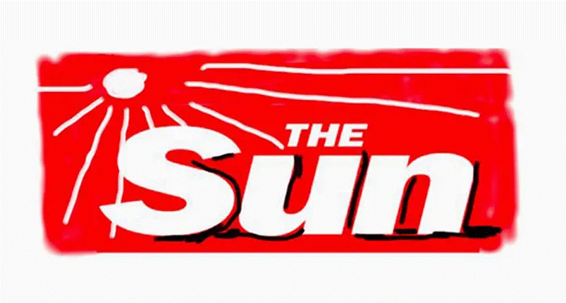 Il logo di “The Sun” è uno dei masthead (testate) più riconoscibili della stampa mondiale: un rettangolo rosso su cui campeggia il nome “The Sun”, composto, sin dal 1969, l’anno in cui Murdoch ne acquisì il controllo, da una variante del Franklin Gothic, in formato Heavy Italic.