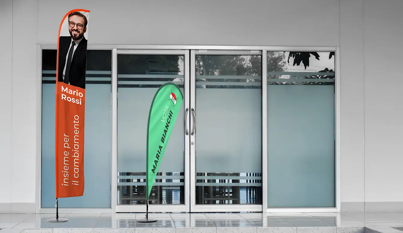 Stampa le bandiere elettorali per la tua campagna. Non serve un megafono per attirare l'attenzione: basta una bandiera piumata! Scopri la vasta gamma di modelli disponibili, sia per ambienti interni, come negozi o centri commerciali, sia per spazi esterni, come festival o eventi all'aperto.